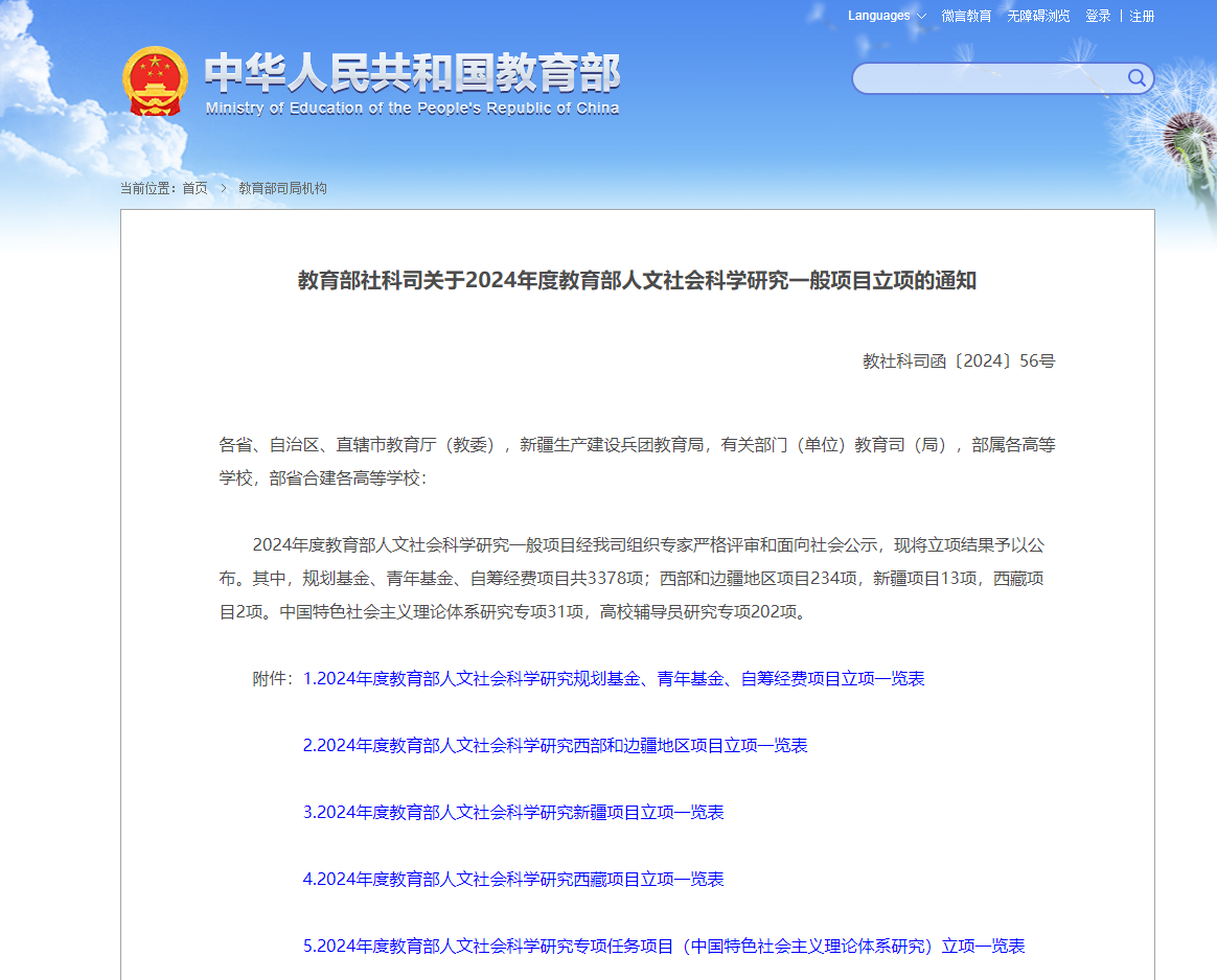 近日,教育部社会科学司公布了2024年度教育部人文社会科学基金项目立项名单,williamhill英国官网连灵教授主持的“全媒体传播体系下老员工政治认同的生成及培育机制研究”(24YJA810004)、刘敏副教授主持的“大学毕业生高质量充分就业的动态评价与协同治理研究”(24YJA880034)、李斌副教授主持“全面推进乡村振兴中村庄情感治理的理论建构与实践路径研究”(24XJA840001) 获批教育部人文社会科学规划基金项目,公司在该项目获批数量上取得新突破!