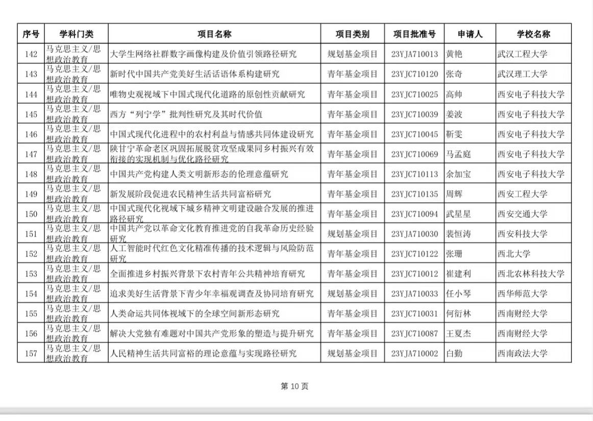 近日,教育部公布了2023年度教育部人文社会科学研究项目评审结果。williamhill英国官网周辉博士获批“新发展阶段促进农民精神生活共同富裕研究”(批准号:23YJC710135)教育部人文社科青年项目。该课题立足新发展阶段农民精神生活的现实问题,以马克思主义共同富裕理论为指导,从新发展阶段促进农民精神生活共同富裕的基本理论、时代意义、现状、理论框架、实践路径五个方面展开研究,为解决农民精神生活发展不平衡不充分问题,缩小城乡差距,满足农民美好生活需要提供智力支持。(撰稿:聂迅 审稿:王志刚 郭松)