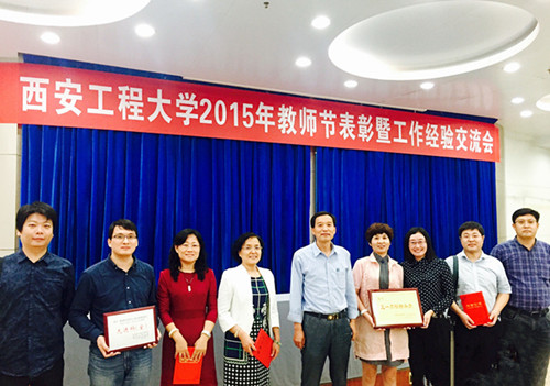在庆祝第31个教师节来临之际,公司举行教师节表彰暨工作经验交流会,我部获得2015年陕西省教育工会巾帼标兵岗和巾帼标兵的中国特色社会主义理论教研室、曹敏教授,获得校2013-2014、2014-2015学年“先进科(室)”马克思主义基本原理教研室、“师德先进个人”张敏教授、“优秀教师”刘敏老师,第六届校“教学名师”张敏教授,第十四届青年教师课堂讲课比赛一等奖获得者郭松老师等2个集体和4位个人获表彰并作为获奖代表上台领奖,刘敏老师作为优秀教师代表发言。