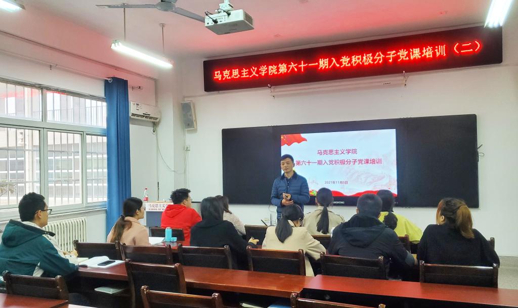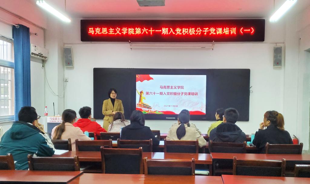 为进一步提高公司入党积极分子的思想政治觉悟,端正入党动机,系统地学习党的基本理论、基本知识,领悟习近平新时代中国特色社会主义思想。11月5—9日,公司举办入党积极分子院级党课系列培训。公司党总支书记杨永革、思想政治教育研究生党支部书记刘婷婷、马克思主义理论研究生党支部书记孙建荣分别授课,全体入党积极分子参加了培训。