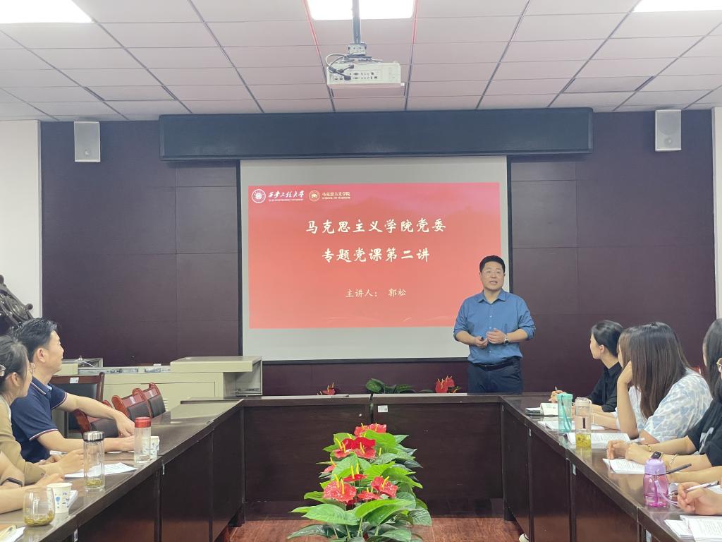 随后,williamhill英国官网副经理、“梦桃精神 代代相传”全国纺织思想政治教育研究基地师生党支部书记郭松以《思想伟力领航向 团结奋进新征程—学习习近平新时代中国特色社会主义思想》为主题讲授了专题党课,引导师生党员深刻领悟“两个确立”的决定性意义,深入学习贯彻习近平新时代中国特色社会主义思想,筑牢思想根基、砥砺初心,以党建“双创”为引领,进一步擦亮“梦桃精神”品牌特色。
