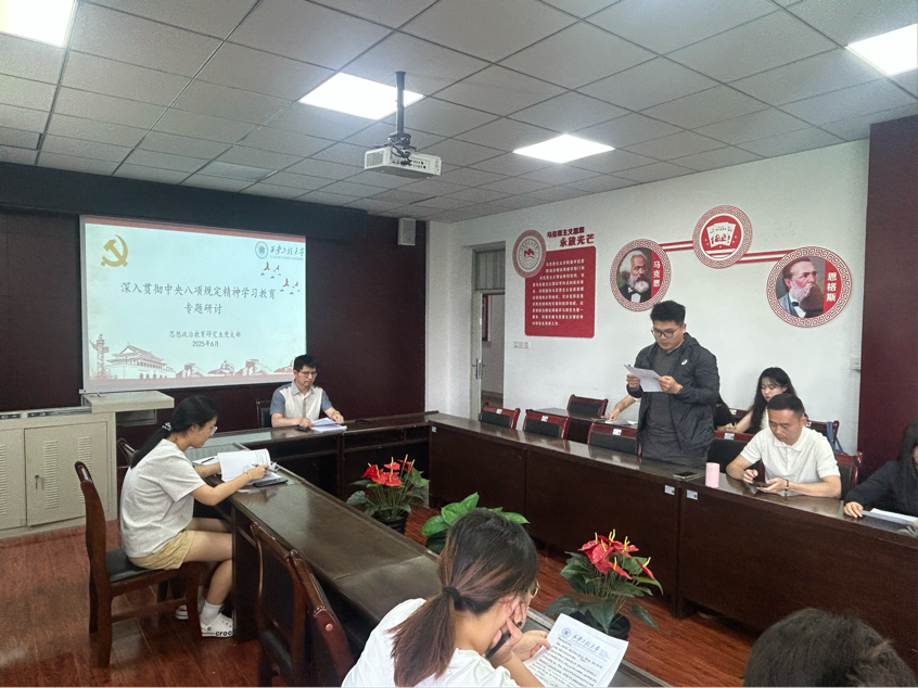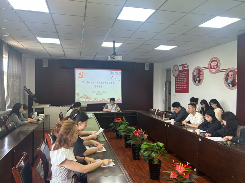 会上,梁育就学习《党的十八大以来深入贯彻中央八项规定精神的成效和经验》与《八项规定改变中国》精神做专题党课。他系统梳理中央八项规定出台背景、实践成效及历史意义,结合研究生党员在学术研究、组织生活中的实际情况,重点解读“改进调查研究”“精简会议活动”等内容。强调中央八项规定是长期有效的铁规矩,要求党员杜绝学术研究中的形式主义,以严谨作风对待每一项科研任务,在组织生活中践行精简高效原则。