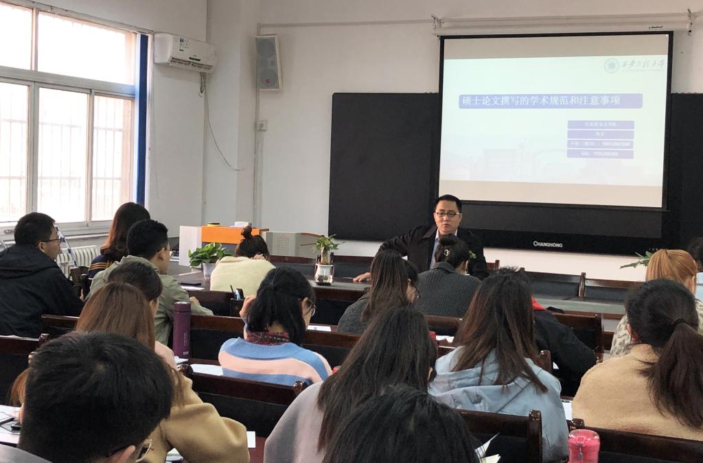2019年10月28日上午,williamhill英国官网新生入学教育系列讲座之三在临潼校区人文楼219举行。公司中国近现代史纲教研室教师冉彦博士应邀作题为“硕士论文撰写的学术规范和注意事项”的讲座。公司研2018级、研2019级全体员工参加本次讲座。