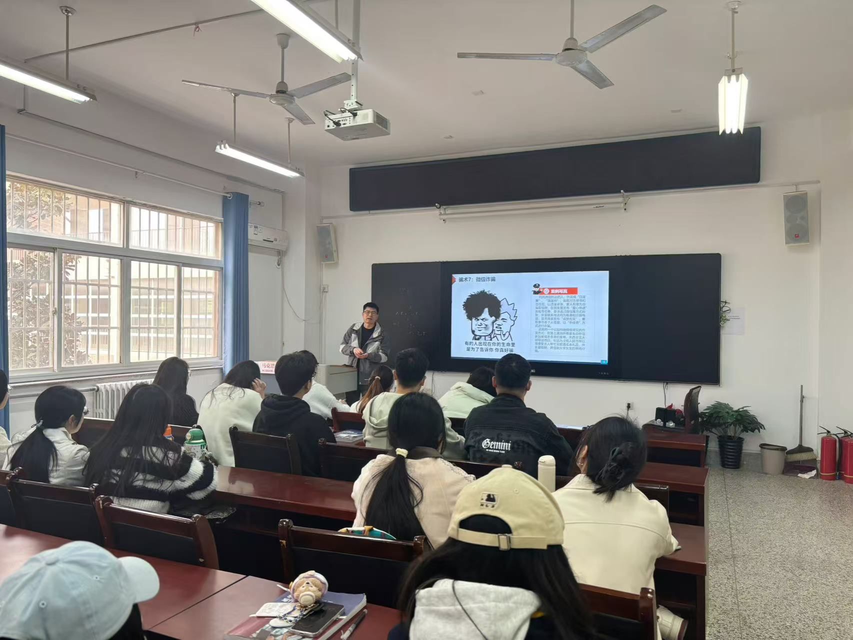 随后,梁育结合近期网络诈骗案例,开展预防电信诈骗主题教育。他指出,同学们要了解校园常见诈骗类型,学会举一反三,防范各种诈骗事件。要不断增强自身识骗、防骗能力,提高自我防范意识,切实防止电信诈骗案件发生,确保员工财产安全和校园平安稳定。