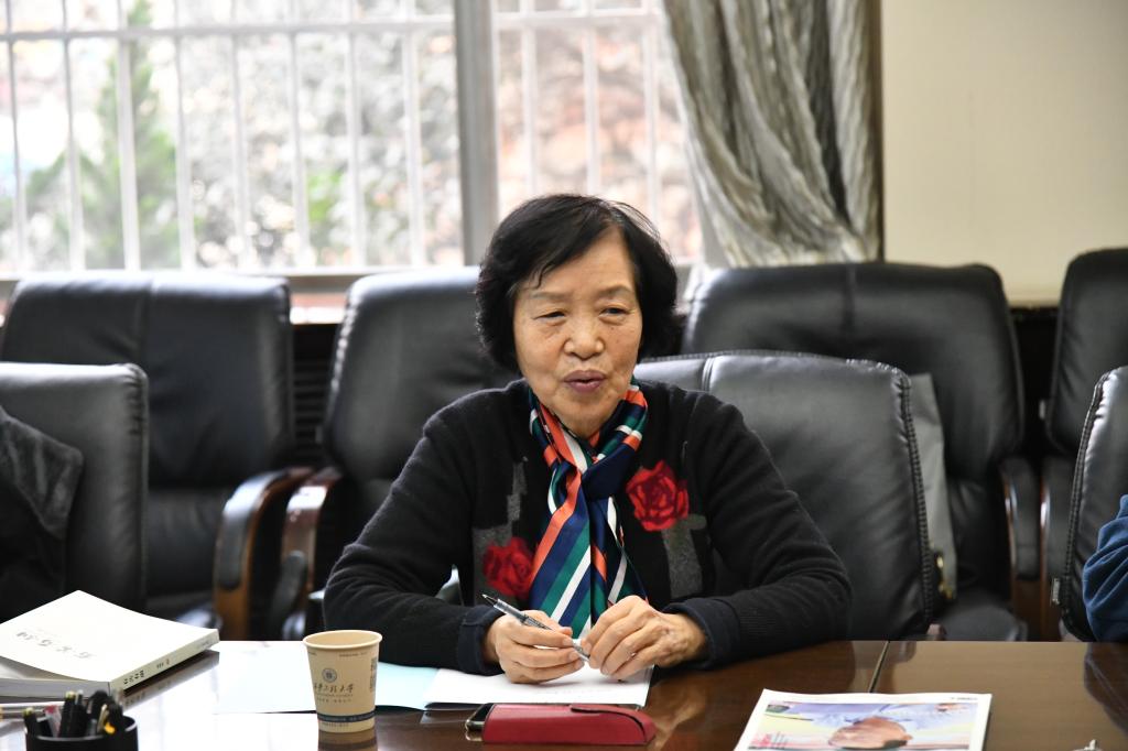 张凤英员工通过自己的亲身经历,详细介绍了“梦桃精神”的形成、发扬和传承情况。尤其是结合她潜心创作的随笔集《有苦有甜》,生动讲述了从一名普通纺织女工走上领导岗位,公而忘私、勇于奉献,用实际行动诠释着“梦桃精神”的内涵。随后,郭松从抢救性走访、调研梦桃小组老同志,挖掘一手素材,“梦桃精神”的生成逻辑、内涵和时代价值研究和筹建“梦桃精神”体验馆等方面提出了基地建设的初步方案。与会的其他教师分别就自己的学术研究方向与“梦桃精神”的融合角度,畅所欲言,进行了深度交流和研讨。