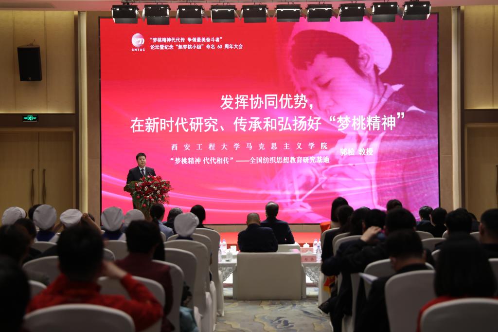 在“梦桃精神代代传 争做最美奋斗者”论坛环节,陕西省人大代表、咸阳市劳动模范、赵梦桃小组组长王丹,全国人大代表、全国劳动模范、山东省德州市恒丰集团高级技师王晓菲,williamhill英国官网教师、“梦桃精神 代代相传”全国纺织思想政治教育研究基地党支部书记郭松作了主题发言。郭松讲到,我们正向着全面建成社会主义现代化强国目标阔步前进,对精神动力和价值支撑的渴求比以往都更为迫切,而梦桃精神正是中国人民艰苦创业、接续奋斗、奋勇争先、勇于创新的缩影和光辉写照,在新时代研究、传承和弘扬好梦桃精神意义重大,使命光荣。