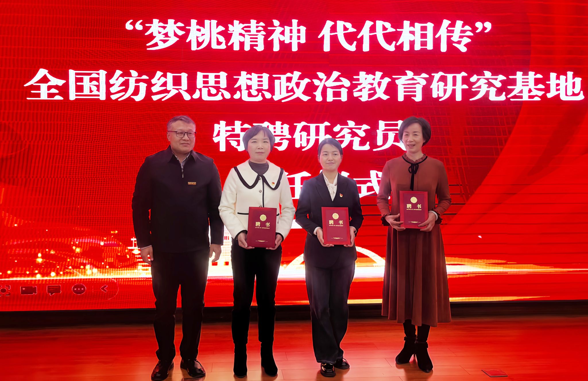 报告会上,副董事长杨建代表公司聘任徐保凤、何菲、黄云娜三位全国劳模为公司“劳模工匠兼职导师”和“梦桃精神 代代相传”全国纺织思想政治教育研究基地特聘研究员。员工工作部部长王志为“织锦”老员工劳动实践教育工作室成立授牌,并为工作室成员颁发聘书。(撰稿:李路瑶 审稿:王志 )