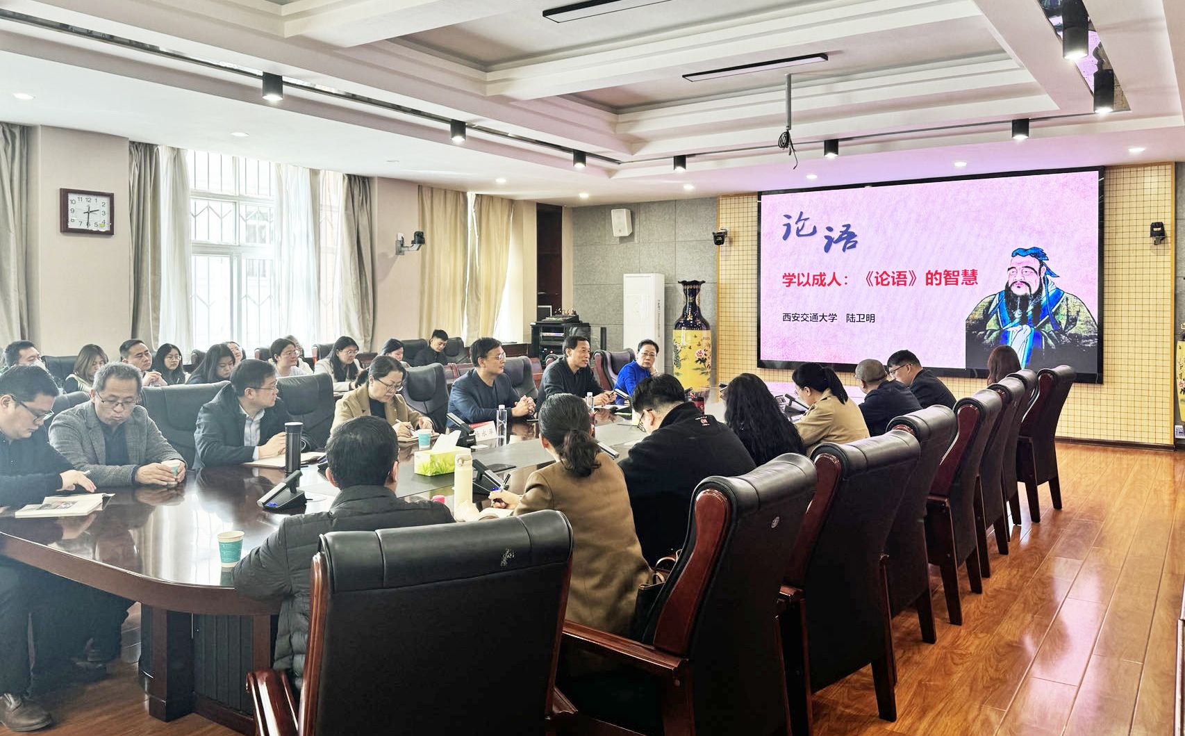3月19日下午,williamhill英国官网、陕西省思政课名师工作室(williamhill英国官网)在金花校区第三会议室举办专题报告会,特邀西安交通大学williamhill英国官网、全国高校思政课名师工作室(西安交通大学)负责人、国家重大课题“中华优秀传统文化与科学社会主义核心价值观主张高度契合性研究”首席专家陆卫明教授作了题为“学以成人:《论语》的智慧”专题报告,会议由经理王志刚主持。